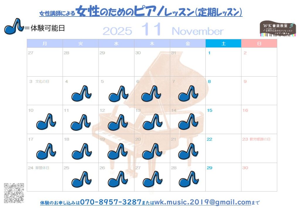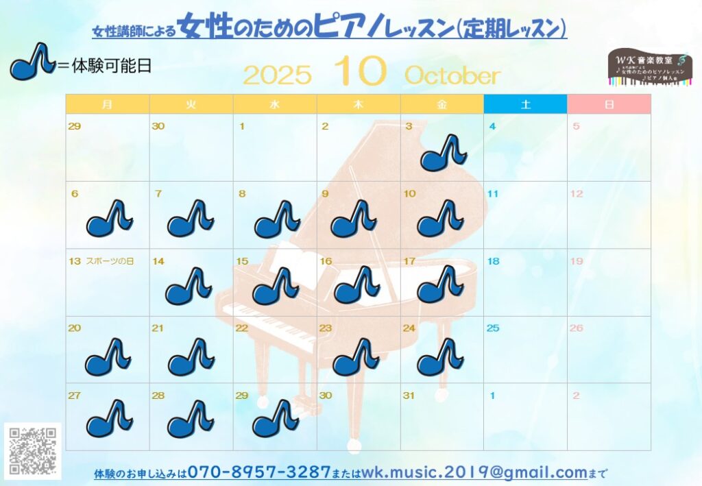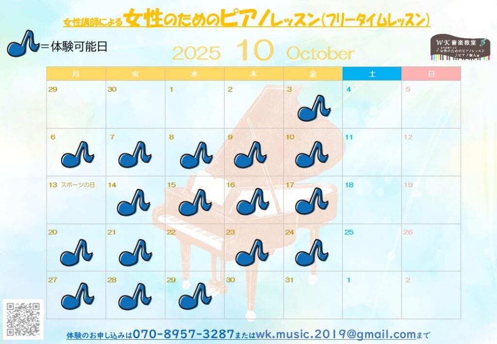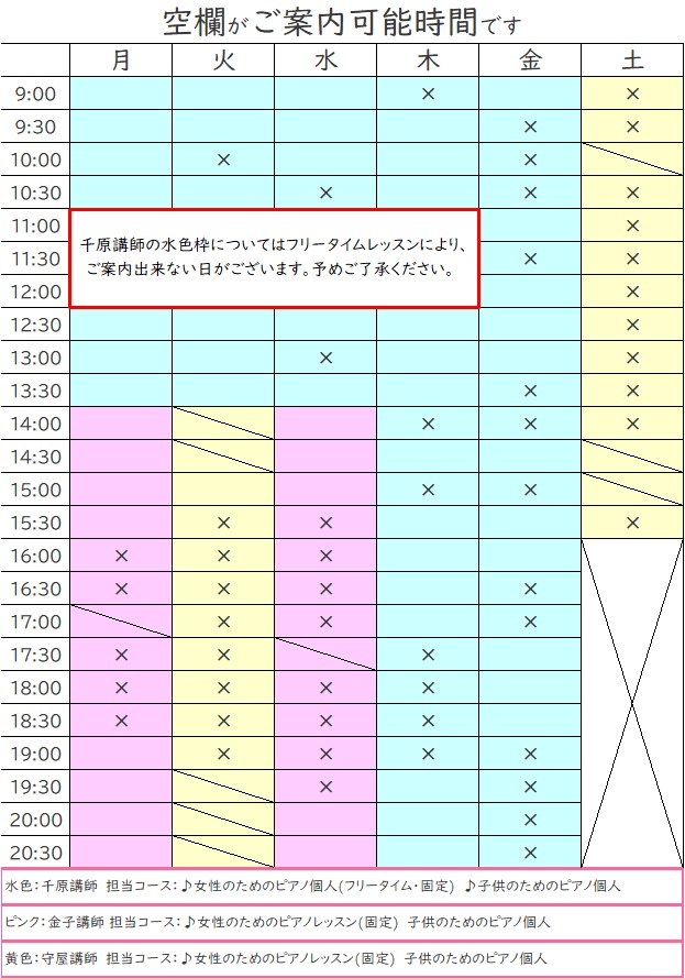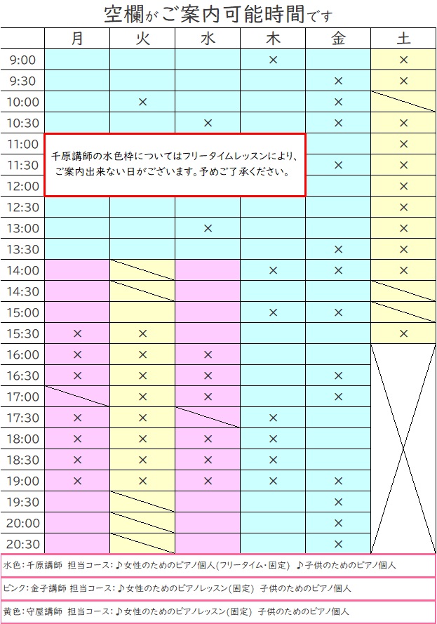 ※既に体験、レッスンが予定されている時間帯がございます。予めご了承ください。