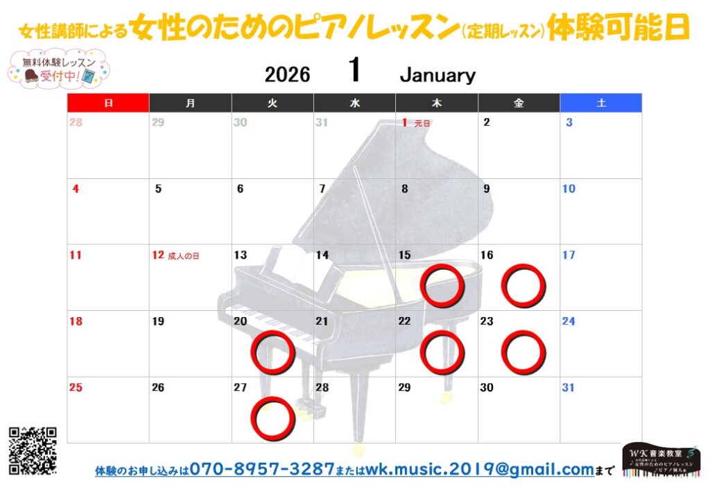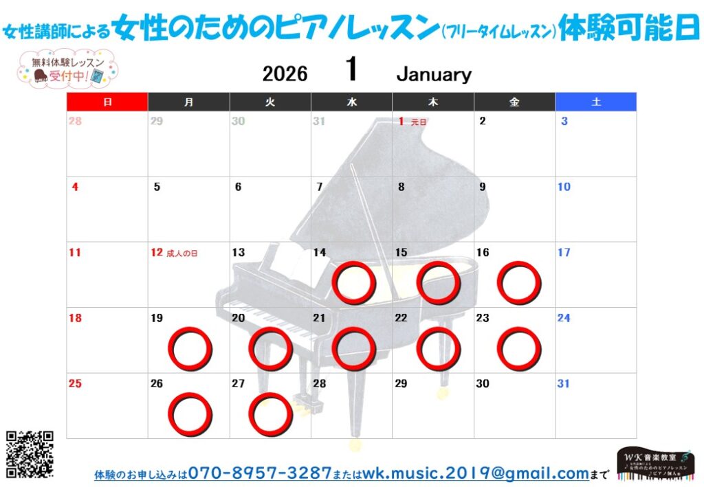 🎵女性講師による女性のためのピアノレッスン