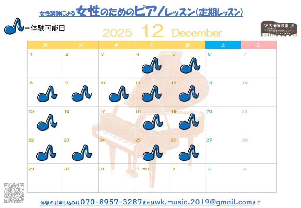※既に体験、レッスンが予定されている時間帯がございます。予めご了承ください。